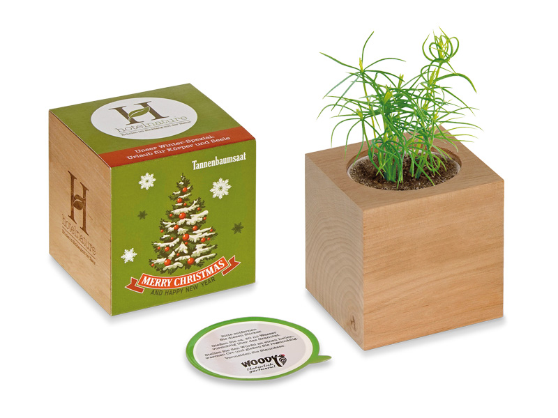 Woody ist ein edler, massiver Holzkubus, gefüllt mit einem speziellen Mineralgemisch und Samen. Die Banderole wird für Sie nach Ihren Vorgaben bedruckt und der Kubus einseitig mit Ihrer Werbebotschaft gelasert. *** INDIVIDUELLE GESTALTUNG DER BANDEROLE MÖGLICH. Die gewünschte Saatsorte können Sie frei wählen.Saatsorten: Sonnenblume, Kapuzinerkresse, Basilikum, Chili, Rotfichte (individuelle Saatanfragen möglich)