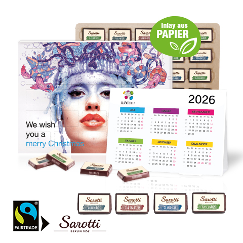 „2 in 1“ Marken-Adventskalender Sarotti mit Jahresplaner, Inlay aus Papier