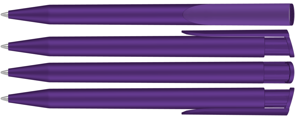 Druckkugelschreiber mit gedeckt mattem Gehäuse und Clipdrücker.