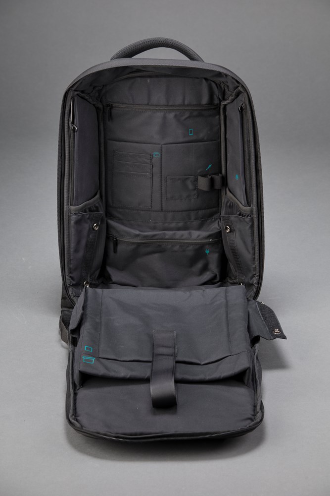 Ein großer Einkammer-Rucksack mit zahlreichen Taschen und zwei Fächern, die Ordnung halten und den Inhalt vor Beschädigungen schützen. Der verdeckte Hauptreißverschluss (Zugang zum Rucksackinneren von hinten) erhöht den Diebstahlschutz. Der Rucksack hat bunte Einsätze, Metallreißverschlüsse, einen gepolsterten Tragegriff oben und einen Riemen auf der Rückseite mit dem der Rucksack auf Reisen am Koffer befestigt werden kann. Fassungsvermögen: 24 l