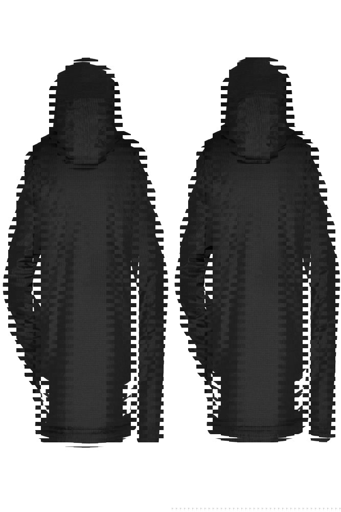 Strapazierfähiges und robustes Rip-Stop-Gewebe aus recyceltem Polyester, wind und wasserdicht (10.000 mm Wassersäule), atmungsaktiv und wasserdampfdurchlässig (5.000 g/m²/24h)