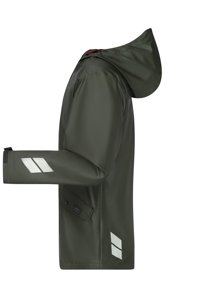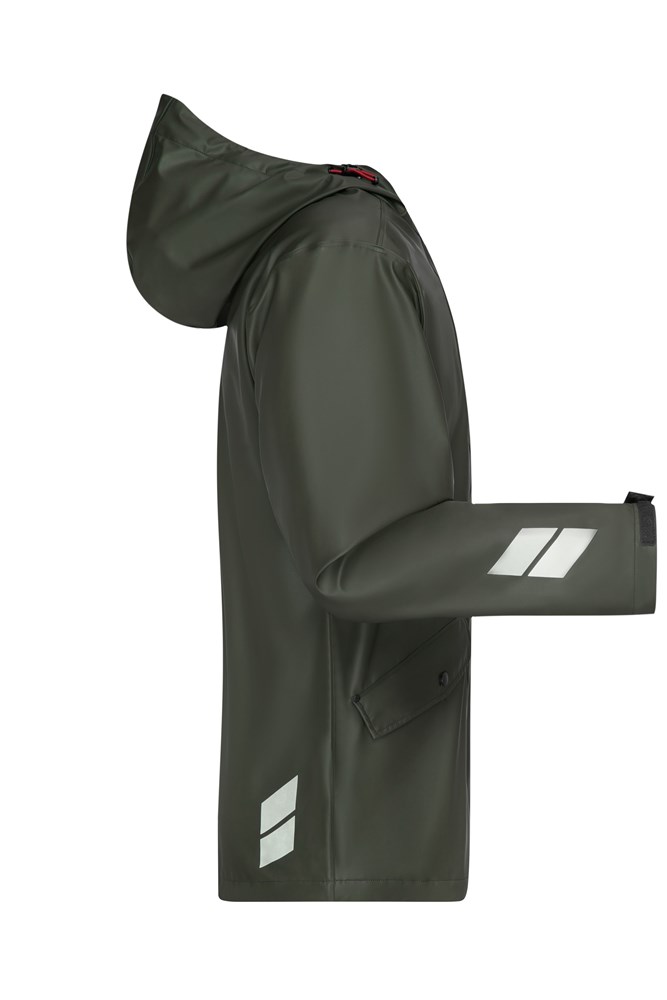 Große, angeschnittene, regulierbare Kapuze, kann mit Schutzhelm getragen werden