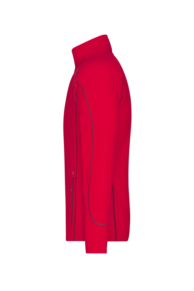 Angenehm weiche Qualität Leicht strukturierte Außenseite, innen glatt Stehkragen Durchgehend unterlegter Reißverschluss mit Kinnschutz Kontrastfarbige Flatlocknähte 2 seitliche Taschen mit Reißverschluss JN596: Taillierter Schnitt 1/2 Oberweite: 52 cm 1/2 Saumweite: 51 cm Länge ab Schulter Vorderteil: 69 cm Länge ab Schulter Rückenteil: 73 cm Ärmel Länge inkl. Schulter: 79 cm OEKO-TEX® Standard 100 (15.0.70467) Raglan