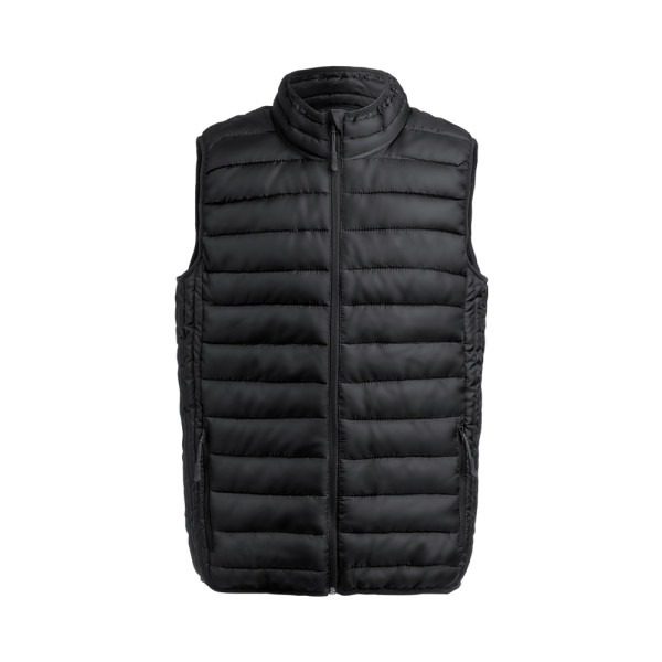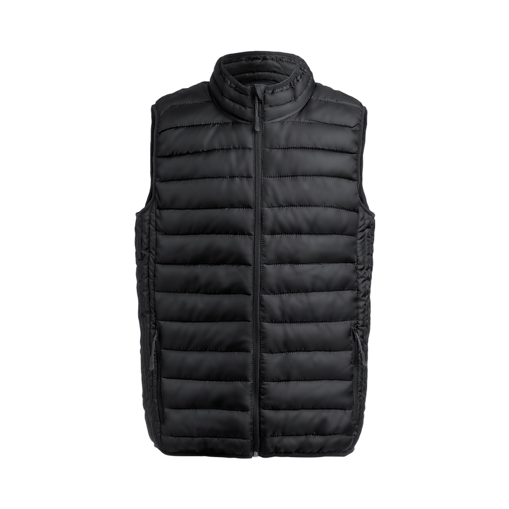 Weste au warmem und weichem Material aus 100% Polyester. Aus extra leichtem, kompaktem, wasser- und winddichtem Material, mit Innenwattierung. Reißverschluss mit Zipper und großen Seitentaschen. Kragen mit Reißverschluss und Knopfleiste und Seitentaschen mit Zipper. Inklusive praktischer Tragetasche. Erhältlich in den Größen S, M, L, XL, XXL.