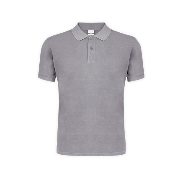 Unisex-Poloshirt mit kurzen Ärmeln und Jeans-Wasch-Effekt, der jedes Stück einzigartig und unwiederholbar macht. Elastische Kontrastdetails an Kragen und Ärmeln. Hergestellt aus 100% gekämmter Baumwolle, Ring Spun 180g/m2. Weicher Griff und moderner Schnitt. Zwei Ton-in-Ton-Knopfleisten. Doppelte Nähte am Saum und an den Ärmeln für mehr Haltbarkeit und Widerstandsfähigkeit bei intensiver Nutzung. Leicht ablösbares Etikett. Erhältlich in den Größen XS, S, M, L, XL und XXL.