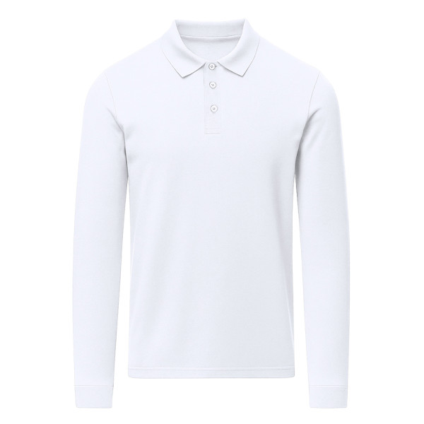 Unisex Langarm-Poloshirt aus Piquéstoff. Kragen und Bündchen in 1x1 Ripp mit Elasthan für besseren Sitz und Komfort. Dreiknopf-Leiste in passender Farbe und verstärktes Nackenband.