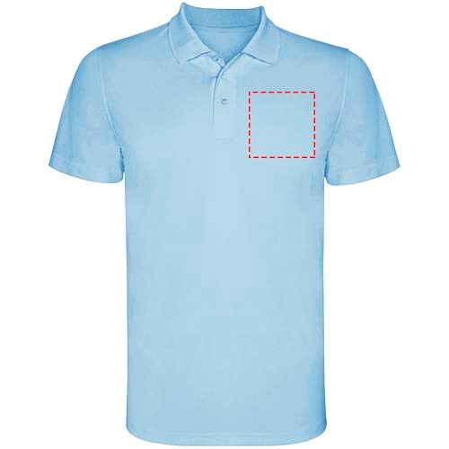 Kurzärmeliges Funktions-Poloshirt. Gestrickter Kragen mit 3-Knopfleiste. Atmungsaktives, leicht zu waschendes und zu trocknendes Material. Herausnehmbares Etikett. Technisches Gewebe. Atmungsaktiver Stoff. Das Modell ist 184 cm groß und trägt Größe L.