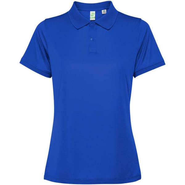 Kurzärmeliges, tailliertes Poloshirt für Damen. Verstärkte und verdeckte Nähte am Innenkragen. 1×1-Rippstrick an Bündchen und Kragen. Seitennähte. Knopfleiste mit 3 Knöpfen und Seitenschlitze.