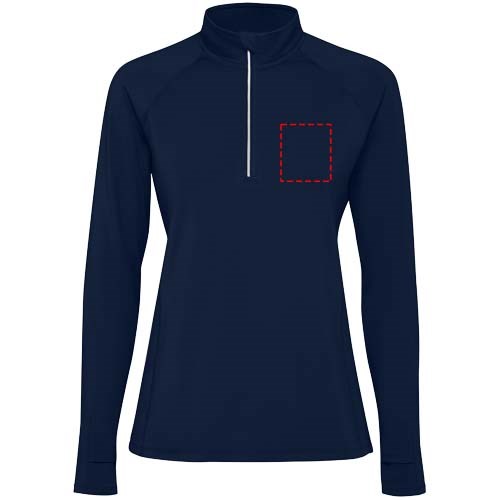 Langarm Funktions-Sweatshirt für Damen mit Raglanschnitt. Schlanke Passform. Kragen mit halbem Reißverschluss und reflektierenden Details. Verstärkte Nahtabdeckungen. Ärmelbündchen mit Daumenöffnung. Reflektierende Details am Rücken. Rückensaum etwas länger als der Frontsaum. Warmes gebürstetes Innenmaterial.
