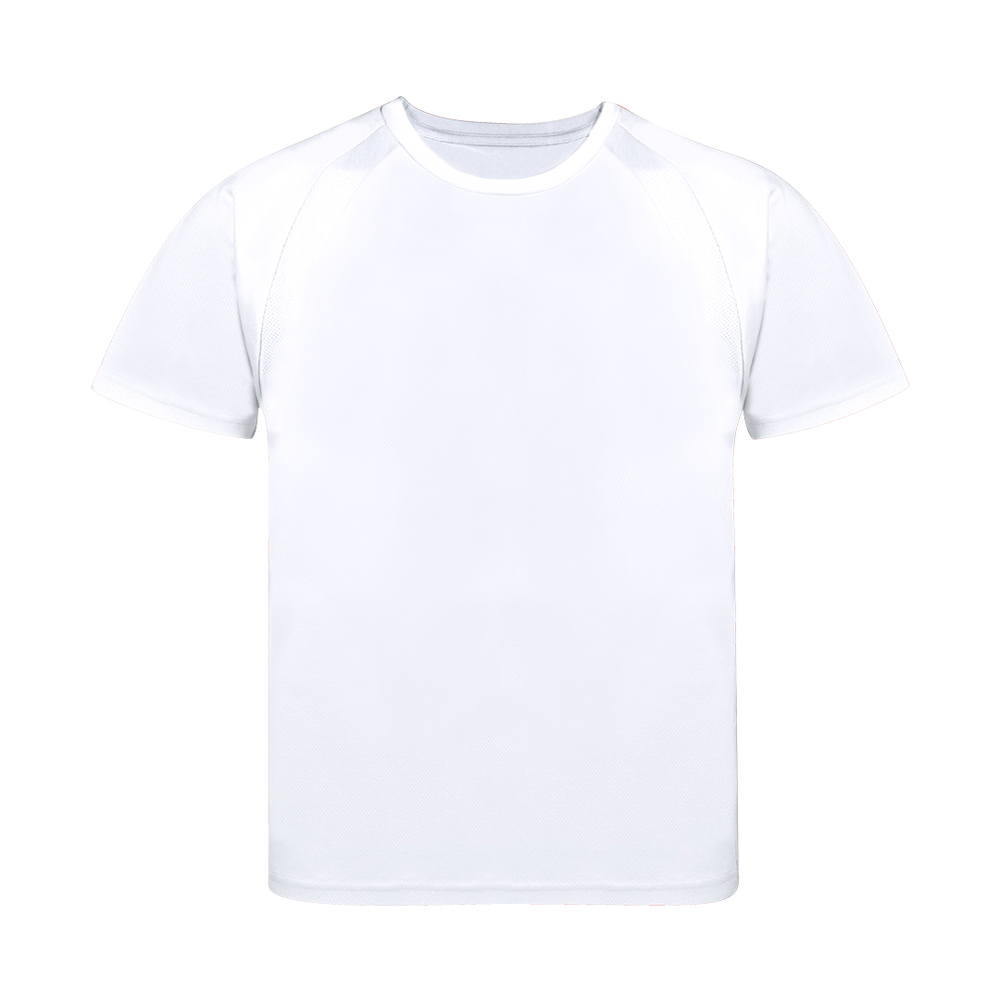 Technisches T-Shirt für Kinder aus 100% atmungsaktivem Polyester 135g/m2. Mit Ranglan-Ärmeln, Rundhalsausschnitt und Front- und Seitenstreifen aus atmungsaktivem, mikroperforiertem Gewebe. Erhältlich in den Größen 4-5, 6-8, 10-12.