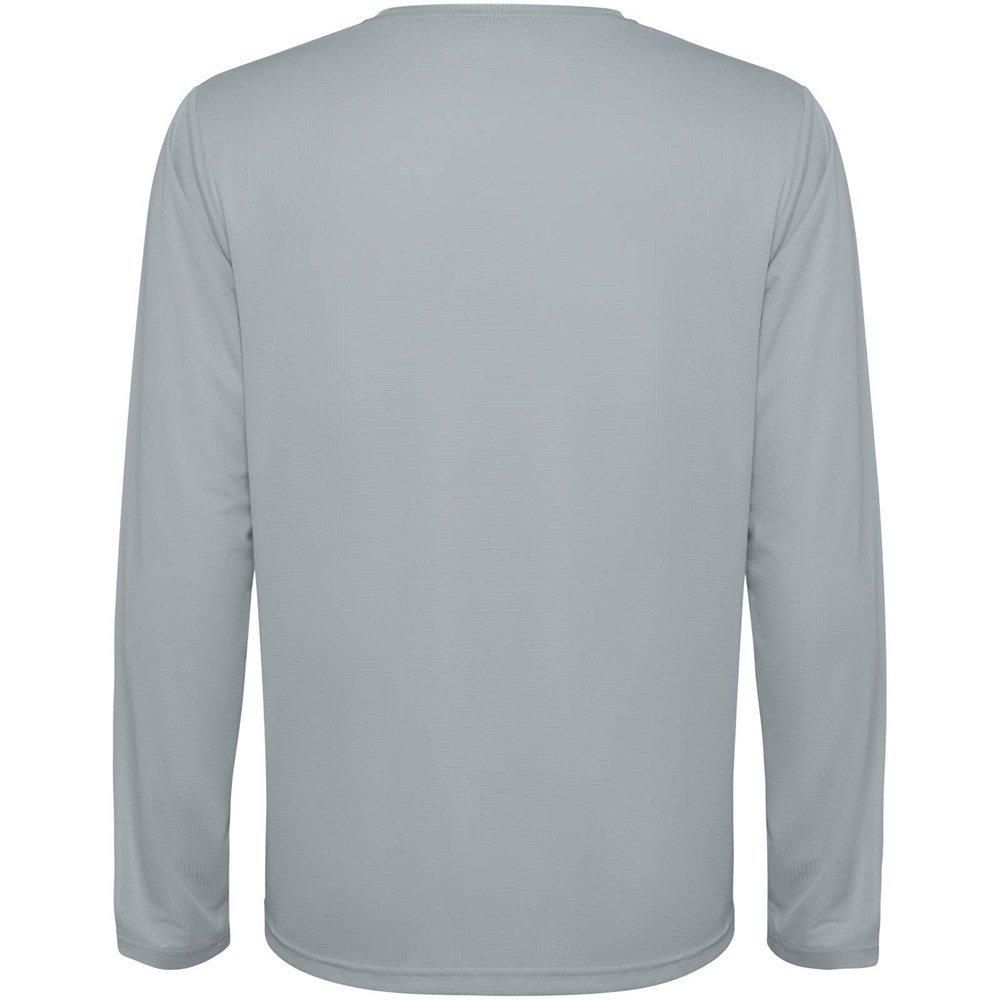 Funktions-Langarm-Shirt für Kinder. Kragen mit passenden Nähten. Rückensaum etwas länger als der Frontsaum. Seitennähte nach vorne versetzt.