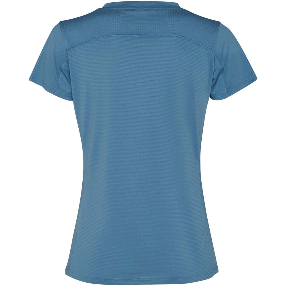 Leichter Stoff aus recyceltem Polyester. Kragen mit gekreuztem Detail und Abdecknähten. Rückenpasse und Ärmel aus atmungsaktivem Stoff. Vorwärts- und Schrägnähte an den Seiten und Schultern. Abgerundeter Saum. Kombination aus atmungsaktiven und elastischen Stoffen. Abnehmbares Etikett.