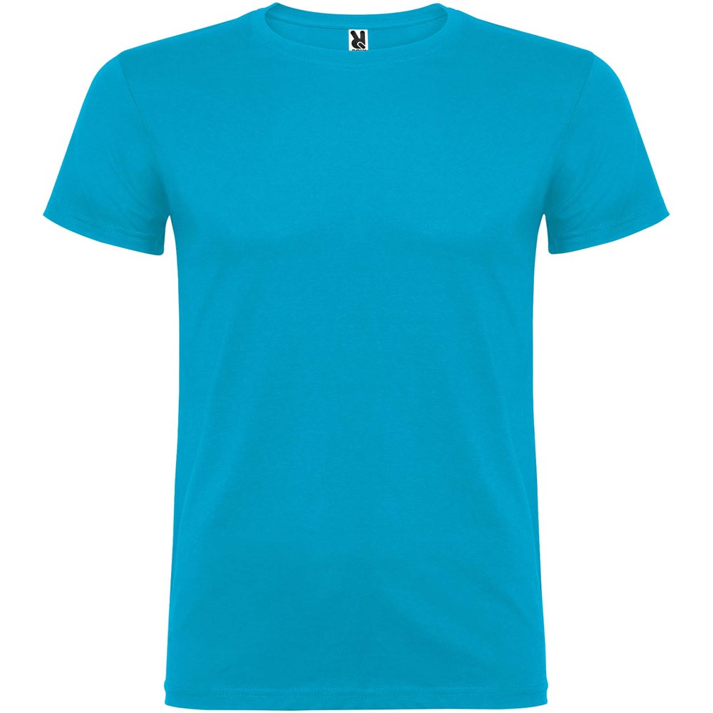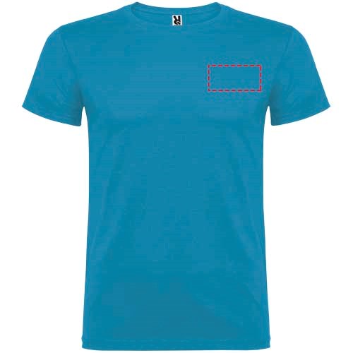 Kurzärmeliges T-Shirt mit doppellagigem Rundhalsausschnitt aus Elasthan, hergestellt aus mit Seitennähten. Verstärkte und verdeckte Nähte am Kragen. Herausnehmbares Etikett. Das Modell ist 120 cm groß und trägt Größe 5/6.