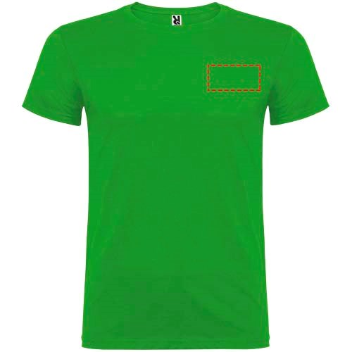 Kurzärmeliges T-Shirt mit doppellagigem Rundhalsausschnitt aus Elasthan, hergestellt aus mit Seitennähten. Verstärkte und verdeckte Nähte am Kragen. Herausnehmbares Etikett. Das Modell ist 120 cm groß und trägt Größe 5/6.