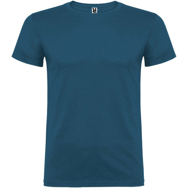 Kurzärmeliges T-Shirt mit doppellagigem Rundhalsausschnitt aus Elasthan, hergestellt aus mit Seitennähten. Verstärkte und verdeckte Nähte am Kragen. Herausnehmbares Etikett. Das Modell ist 120 cm groß und trägt Größe 5/6.